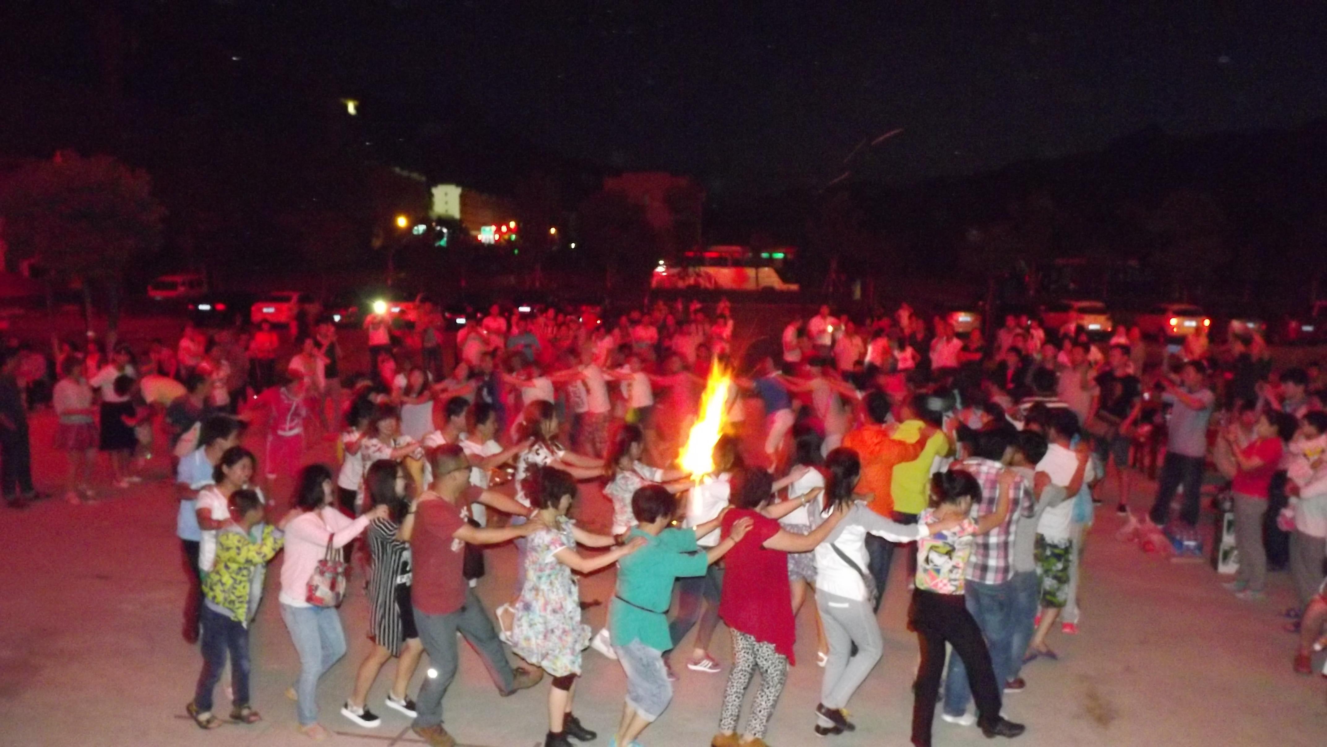 傍晚八點(diǎn)三十分,大家在金絲峽中心廣場(chǎng)集合就緒,由公司副總經(jīng)理黃辰先生點(diǎn)燃火束,篝火晚會(huì)宣布開(kāi)始。大家手拉手在篝火周圍轉(zhuǎn)成一個(gè)圈,伴著歡快的音樂(lè),一起跳舞,一起歡唱,頓時(shí)歡呼和喜悅彌漫在整個(gè)廣場(chǎng),其樂(lè)融融,好不熱鬧!
